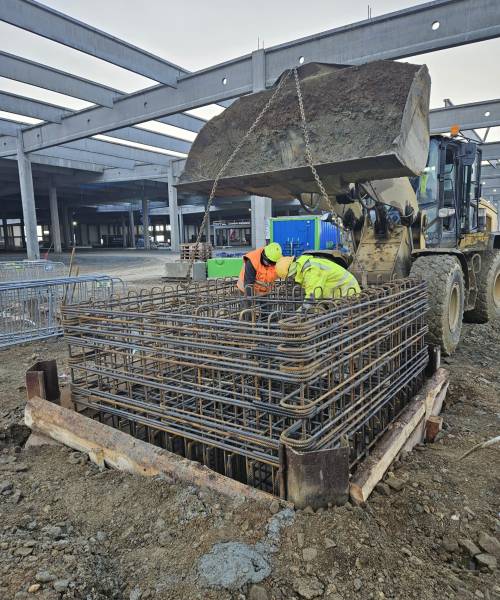 Piloty pod halu byly navrženy průměru 900 mm v maximálních délkách až 14,50 m. Celkem bude vyvrtáno přes 200 ks pilot. Vrchní stavbu tvoří skeletový nosný systém (sloupový). Sloupy jsou uchyceny do kalichů v hlavicích pilot, které realizujeme. Průměry hlavic byly navrženy 1350 a 1500 mm.