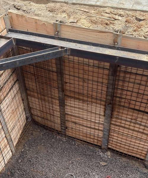 Once the monolithic structure inside the pit is finished to a predetermined height, we will return to the construction site to remove the steel frames. The press will then be completely finished.