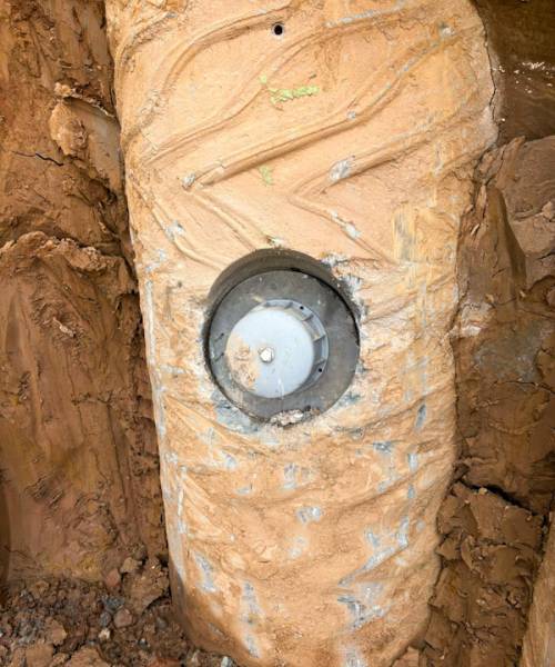 In the photos below you can clearly see the relief drawn on the piles. This is most often created in clays during pile casing removal, when the crown of the casing scrapes out visible grooves on its way up.